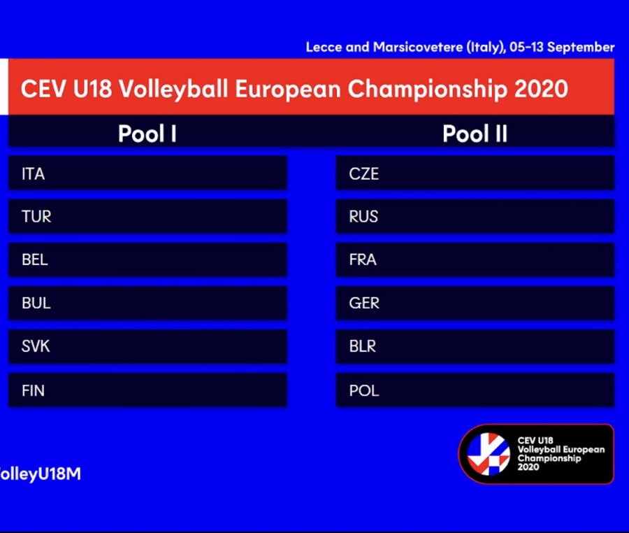 България ще се изправи срещу Италия, Турция, Белгия, Словакия и Финландия на европейското първенство за юноши под 18 години през септември на Апенините. Жребият беше изтеглен виртуално заради пандемията от коронавируса. Предварително бяха определени водачите на двете групи. Италия води първата, а Чехия – втората.
